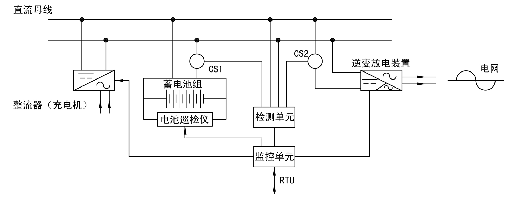 在这个系统中,要实现无人值守,定时核对性自动放电回馈电网,最重要的就是由控制系统判断蓄电池是否处于浮充状态,只有在浮充状态下,核对性放电才有意义。