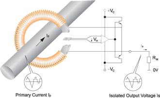 其逻辑是:Ip->H->B->Vh->Vout->Is->B=0。可见磁芯中的磁感应强度始终保持为零,二次线圈的输出电流Is大小为Ip/N,严格按照匝数比输出,比如1000A闭环电流传感器输出电流为1000A/5000,输出为200mA (按照1:5000的匝数比输出)。