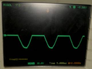 以上实验是在纯阻性负载的情况下进行的实验,波形为理想的正弦波,经过二极管半波整流后,输出波形也比较规范。如下图: