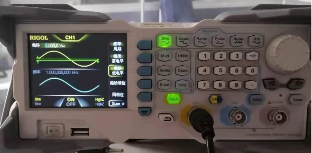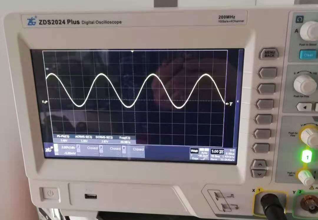 由函数发生器输出一个50Hz、2Vrms的正弦波,以及2Vdc的直流偏置